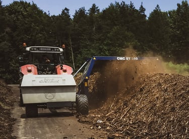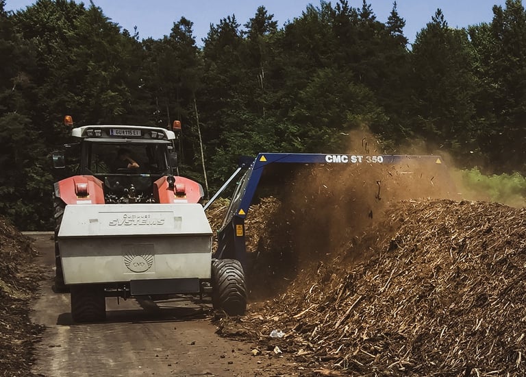 Los orgánicos son triturados para aumentar la superficie de contacto y mezclados en proporciones óptimas de carbono y nitrógeno.